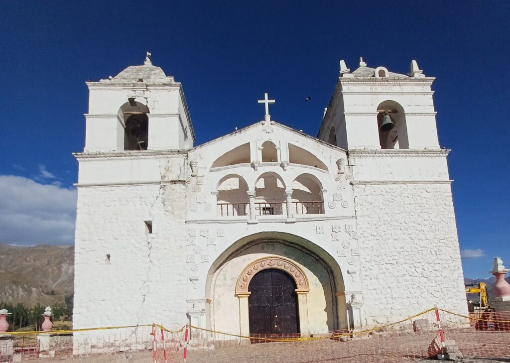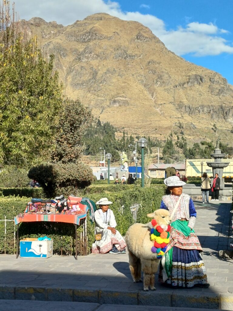 En se rendant au Mirador, nous avons fait un arrêt photo à Maca. Petit village andin avec église coloniale et marché artisanal. L’église de Maca a été partiellement détruite par des tremblements de terre (notamment entre 1979 et 1991) et a été restaurée pour retrouver sa splendeur originale. Cela témoigne de la forte activité sismique de la région andine.