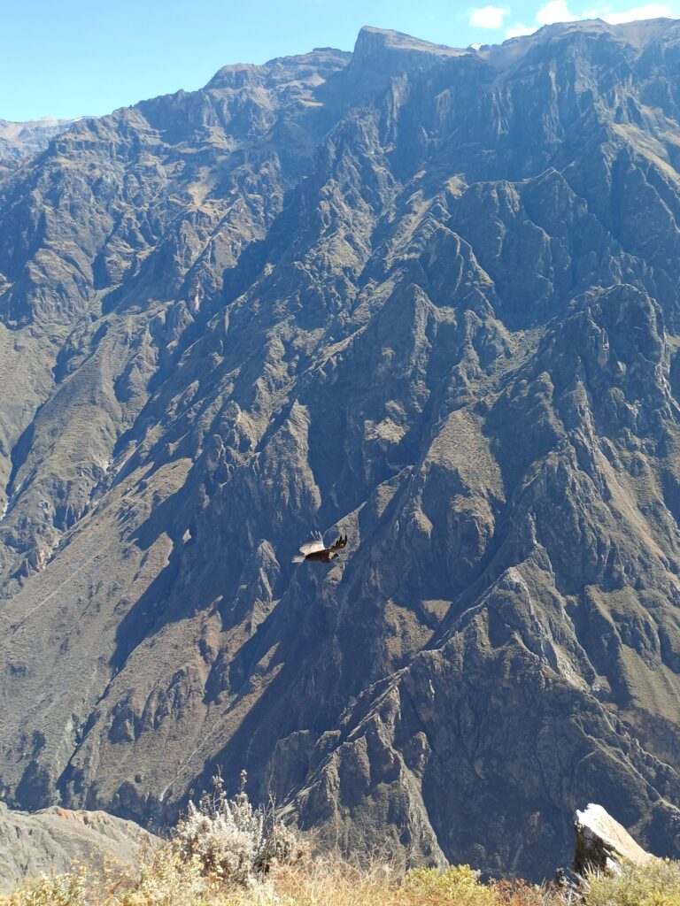 Après le petit-déjeuner, nous nous sommes rendus au Mirador de la Cruz del Cóndor, situé à 30 minutes de Chivay. Il constitue le point d’observation privilégié pour tenter d’apercevoir des condors. Nous avons eu beaucoup de chances car nous en avons vu beaucoup. Temps d’arrêt environ 45 minutes.