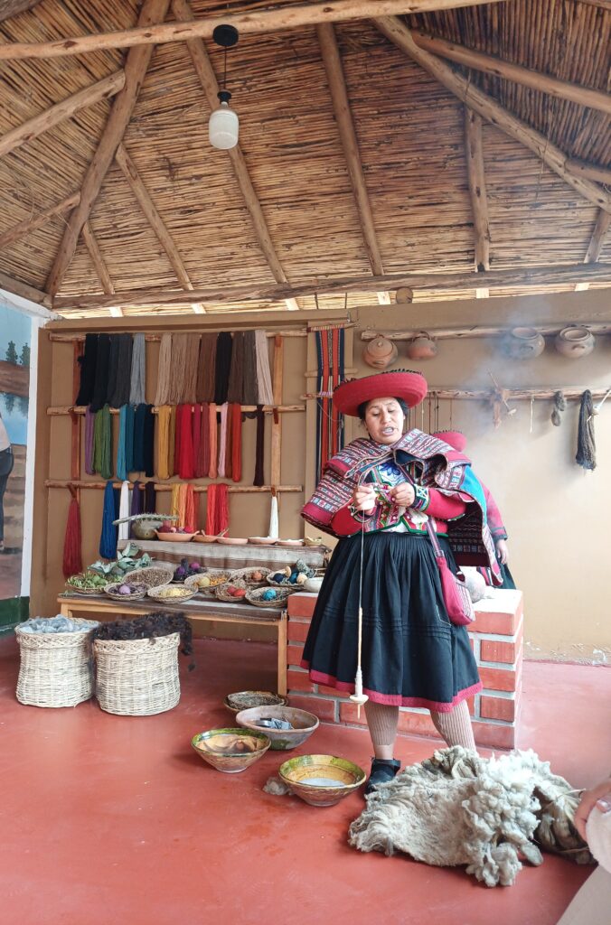 Premier arrêt à Chinchero, à 3754 m d’altitude, village andin traditionnel, connu pour son marché, ses textiles traditionnels (démonstrations de teinture et de tissage) et son site archéologique construit sur des fondations incas.