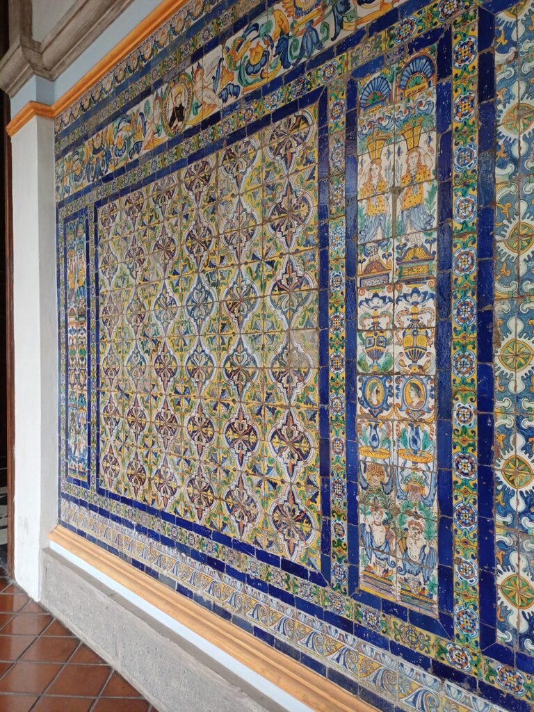 Certaines salles présentent d’impressionnants plafonds sculptés en bois de style mudéjar (une influence architecturale espagnole mêlée à des motifs islamiques), dont celui de la salle capitulaire, datant de 1580, réalisé sans utiliser de clous.