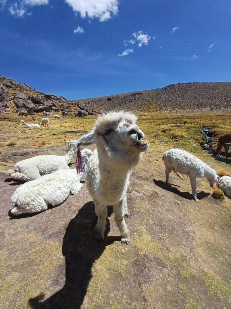 Départ autour de 7h30/8h depuis l’hôtel. Après avoir quitté la ville, nous traversons la réserve nationale de Salinas et Aguada Blanca, où nous pourrons observer des vigognes depuis le mini bus. Nous effectuerons notre premier arrêt à Toccra Bofedales, où nous pourrons approcher des alpagas.