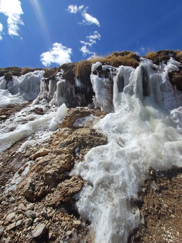 À cette altitude, même en plein jour et en l’absence de chutes de neige récentes, la température reste extrêmement froide. Il n’est pas rare d’observer de la glace persistante au bord de la route, surtout tôt le matin, ou même un peu de neige, selon la saison et les conditions météorologiques.