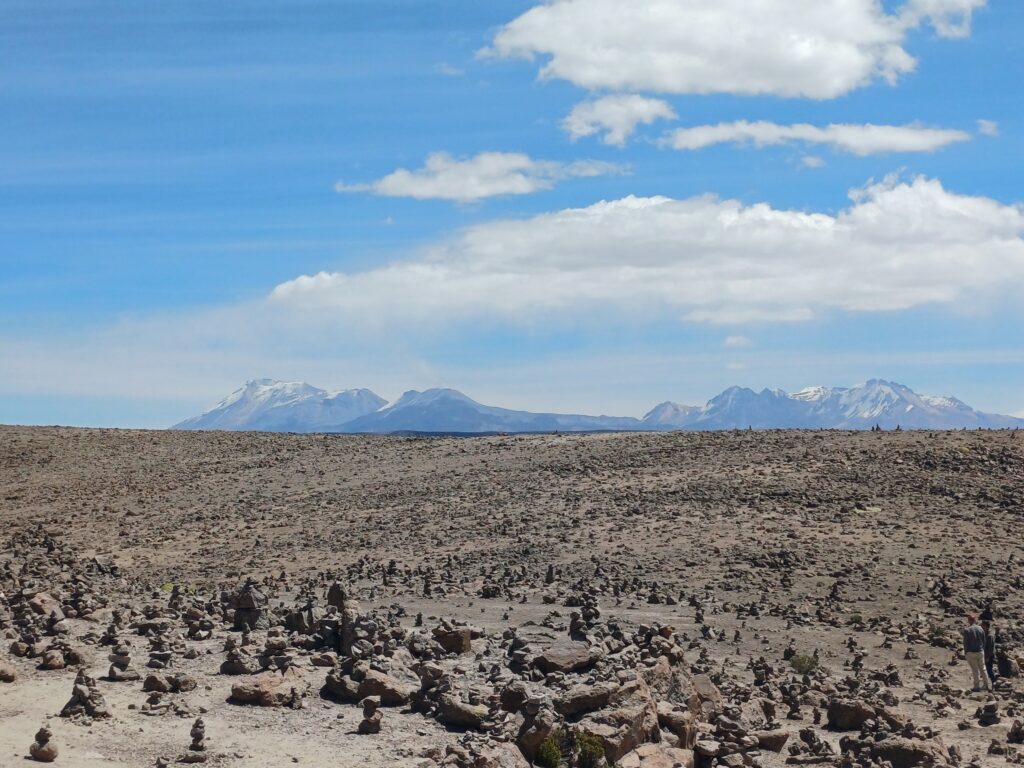 Nous avons ensuite fait un arrêt au Mirador de los Volcanes, également connu sous le nom de Patapampa, le point culminant de la route qui atteint 4 900 mètres d’altitude, d’où nous apprécierons une grande partie de la chaîne de montagnes de l’ouest.