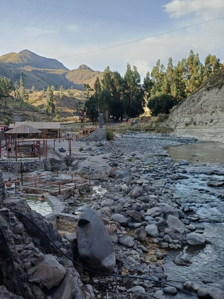 Ils vous indique ensuite « Après le déjeuner, nous nous installerons dans nos hôtels respectifs. Dans l’après-midi, nous pourrons profiter d’un bain relaxant dans les sources chaudes (entrée facultative payée par le client) dont les eaux thermo médicinales varient entre 35 °C et 38 °C dans les piscines. » -> J’avais donc pensé avoir l’après-midi pour nous et me balader du côté de Yanque et Coporaque. Mais, nous avons directement été amenés aux sources chaudes de Puye et non celles de Chivay sans passer par l’hôtel. Tu te sens donc un peu obligé de faire trempette, de suivre le mouvement. Tout comme pour le dîner, le guide t’indique qu’on vient te chercher à ton hôtel. On ne te demande pas si tu prévois de dîner de ton côté ou non ? C’est à toi de dire, « je ne prévois pas d’aller au dîner spectacle proposé. »